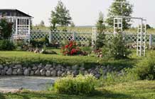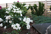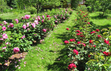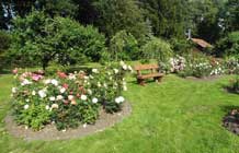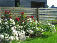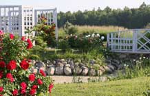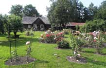 Hr Alberti roosiaed Rakvere lähistel. Kujundust ilustavad valged aiaelemendid